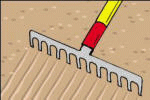 (A) Den Boden gründlich auflockern (mindestens 10-15 cm tief umgraben oder fräsen) und Steine bzw. Äste entfernen. Die Qualität schwerer (lehmiger) oder stark verdichteter Böden können Sie auch noch mit gewaschenem Quarzsand (Körnung 0,3 - 0,5 mm) und/oder Torfzugaben verbessern - das bedeutet Staunässe vor und fördert gesunden Gräserwuchs.